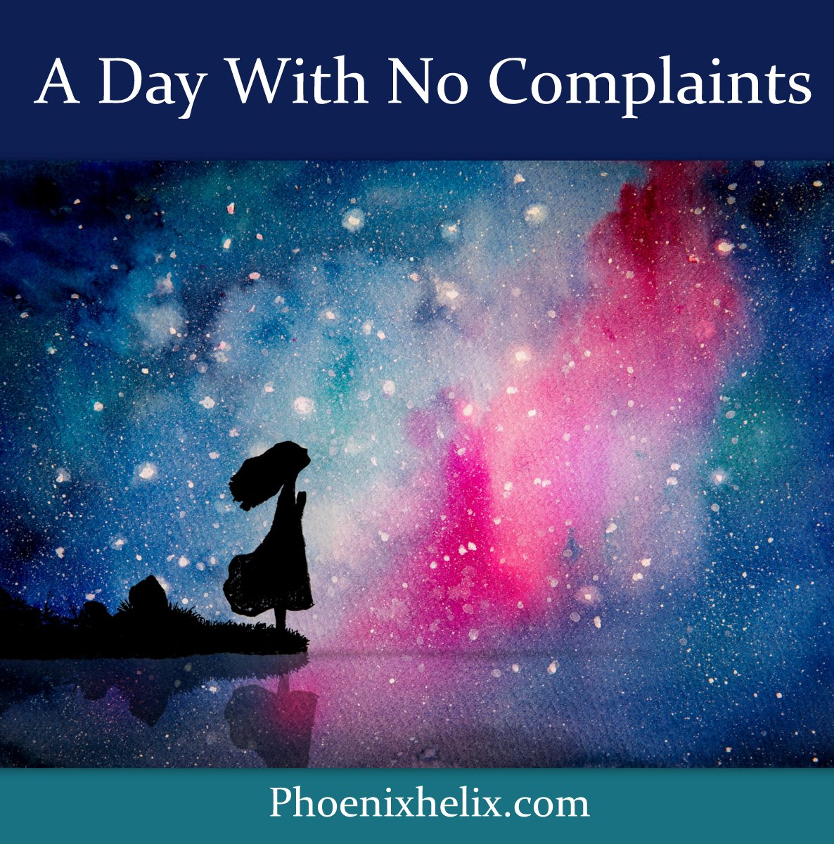 - Choose your day. Try to go the entire day without complaining. No complaints about the weather, the news, politics, your job, other people, pet peeves, stressors, burdens, symptoms, pain, etc.